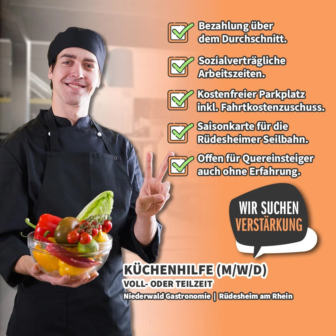 Wir suchen Dich ab sofort in der Niederwald Gastronomie als